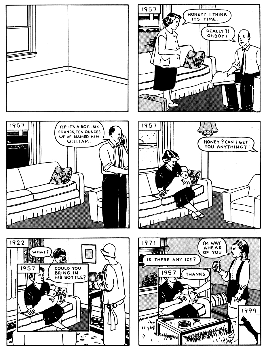 - First page from "Here", Richard McGuire, Here, (Raw, vol. 2, n. 1, 1989) (English)