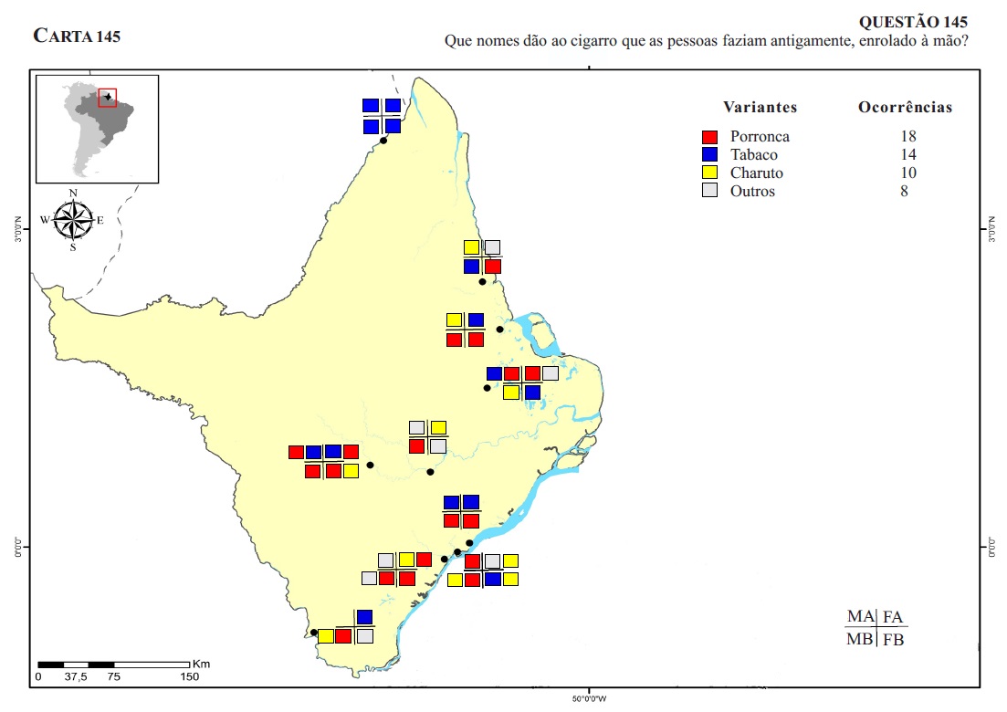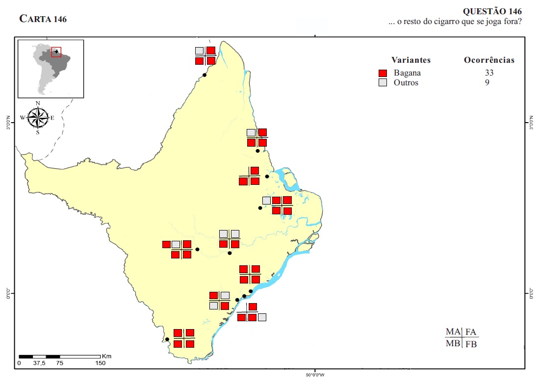 Variação linguística para cigarro de palha e toco de cigarro no Atlas Linguístico do Amapá