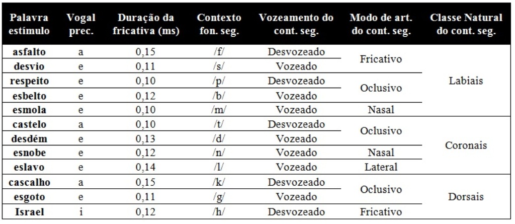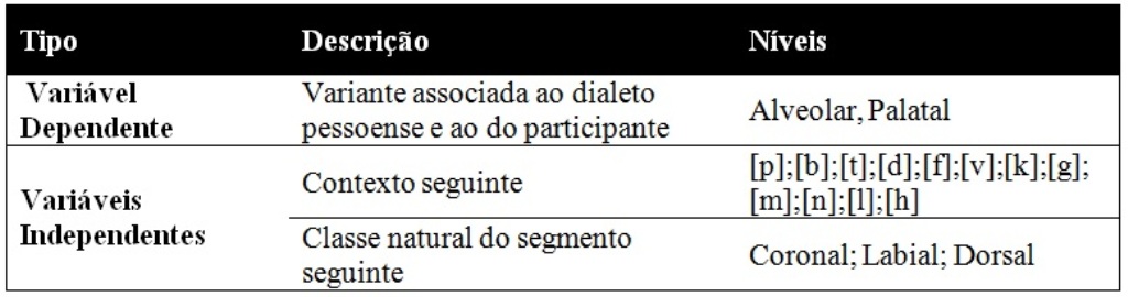 - Tabela 2- Lista de palavras gravadas e as variáveis controladas (Português (Brasil))