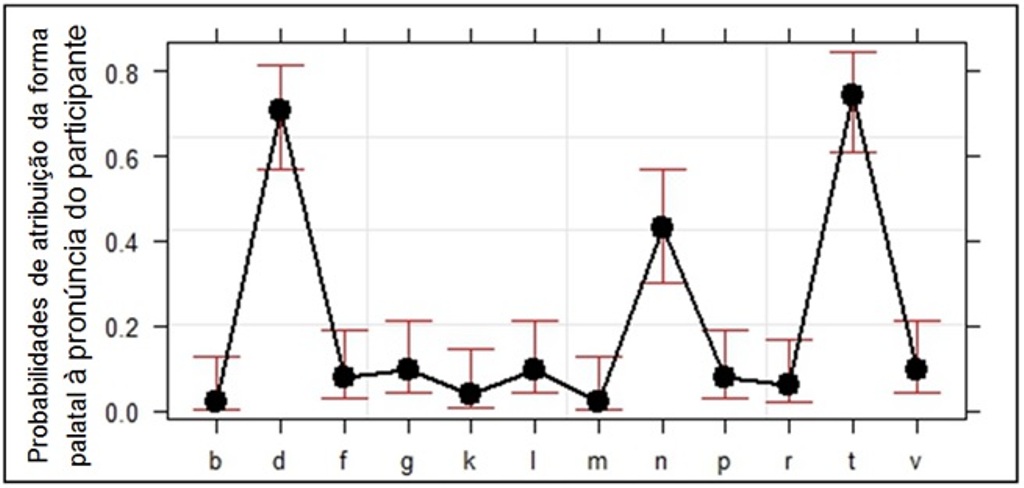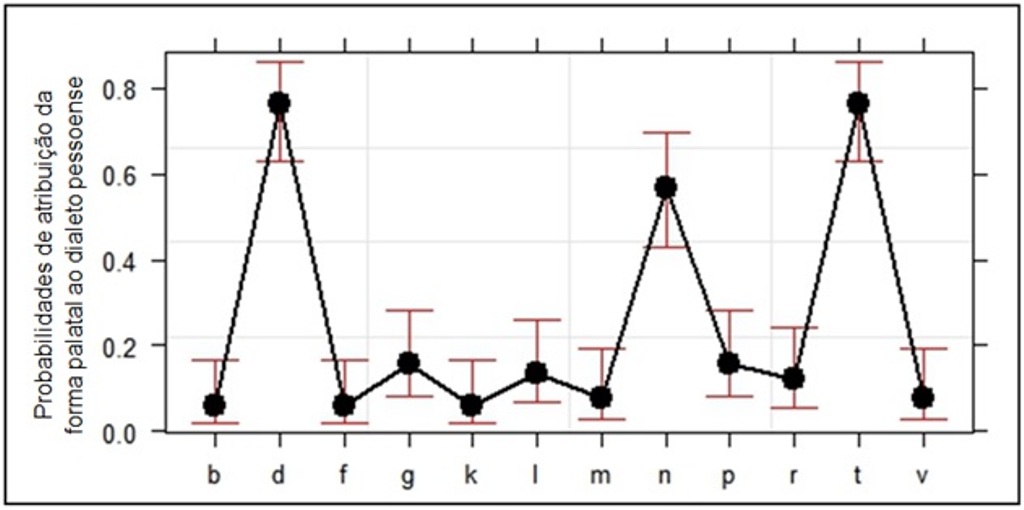 - Gráfico 6 - Gráfico de efeitos da variável “Contexto fonético seguinte” na escolha de uma das pronúncias no dialeto pessoense (Português (Brasil))